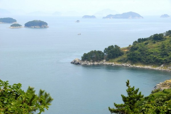 욕지도의 바다. 몽돌이 많은 해수욕장.
