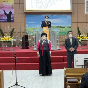 1. 최기용 장로 은퇴식 (코로나 상황으로 인하여 담임목사이신 류광은 목사께서 대신 감사패 수령) 2.장로 안수식