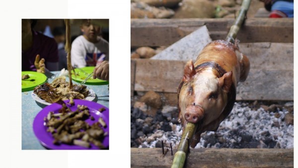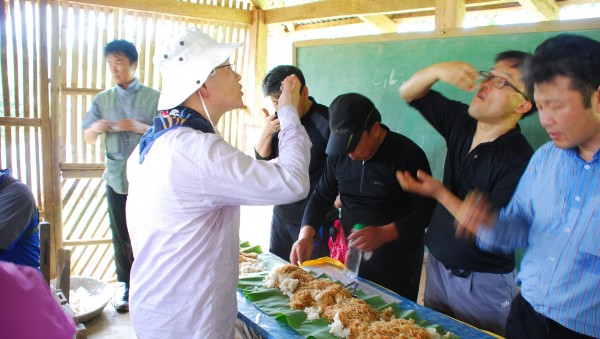 식사 준비중! 접시는 바나나 잎!