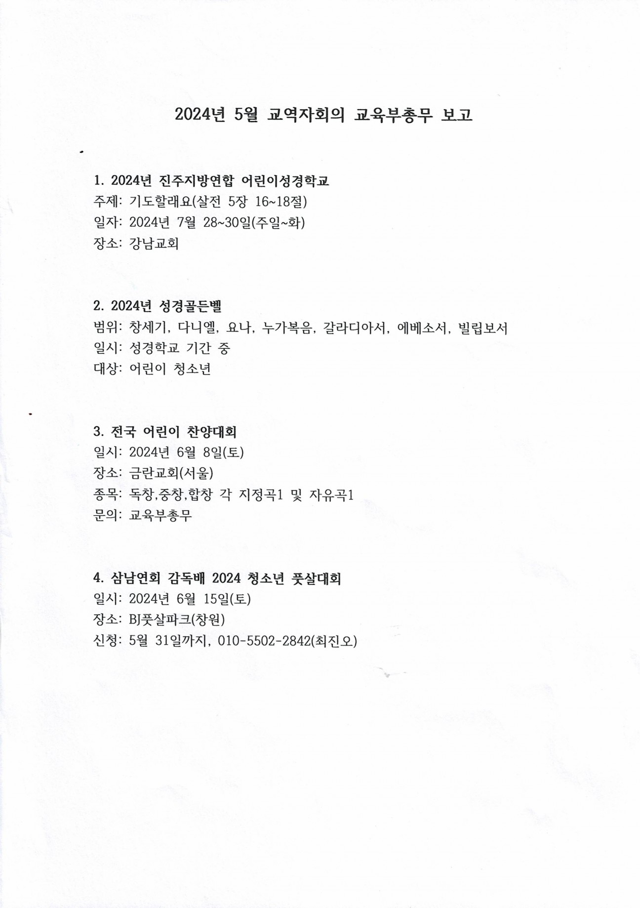 2024년 5월 16일(목) 교육부 보고 본문 2024년 5월 16일(목) 교육부 보고 이미지 첨부합니다. 양이삭 조회 933회 2024-05-16 17:34 목록 댓글목록 이전글 2024년 6월 11일 교육부 보고 24.06.11 다음글 2023년도 진주지방 사경회 23.12.19
