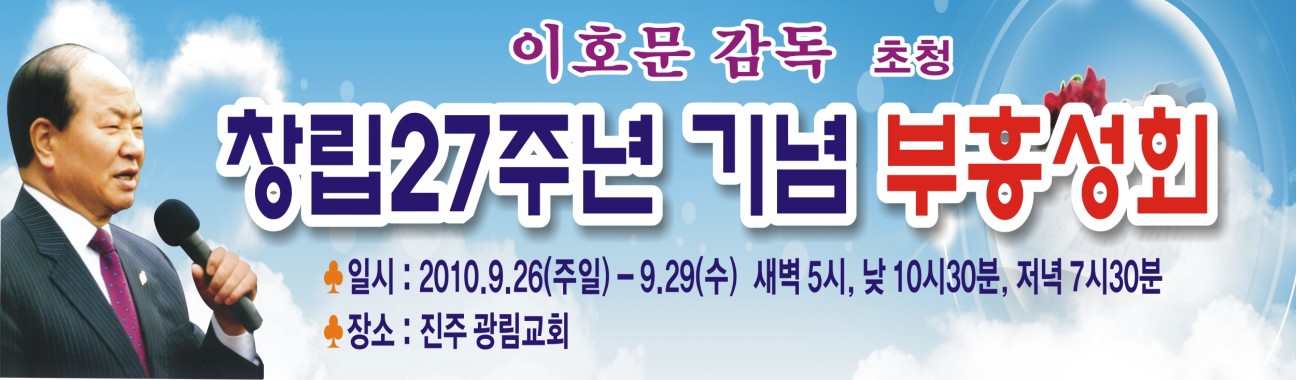 진주광림교회 부흥회 본문 진주광림교회 부흥회 진주광림교회 창립27주년을 맞이하면서 이호문 감독님을 모시고 창립기념성회를 준비하였습니다. 위해서 기도해 주시면 감사하겠습니다. 박종찬 조회 3,945회 2010-09-10 18:07 목록 댓글목록 이전글 제2회 불우이웃돕기 일일찻집 10.12.01 다음글 진주광림교회 특별 새벽기도회 10.09.04