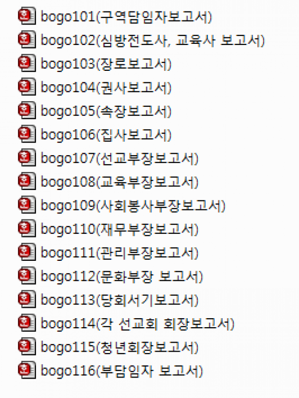 구역 담임자 및 임원 보고서 (전체 압축) 압축파일을 받으시면 됩니다.