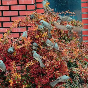 교회의 열매나무에 직바구리가 먹이찾아 때로 왔네요내게는 봄소식을 전하러 온것같이요...............^^